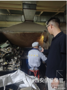 用人单位名称 | 陕西安信显像管循环处理应用有限公司 | 用人单位注册地址 | 陕西省咸阳市礼泉县西张堡镇陕西资源再生产业园 | 联系人 | 梁望潮 | 报告名称及编号 | 陕西安信显像管循环处理应用有限公司工作场所职业病危害因素检测报告 陆港检(卫)字[2025]第214号 | 项目组人员 | 郑 皓、李世凤、胡恒远、龚 洲 | 现场调查人员 | 郑 皓、李世凤、胡恒远、龚 洲 | 现场调查时间 | 2025年8月22日 | 用人单位陪同人 | 梁望潮 | 采样与测量人员 | 郑 皓、李世凤、胡恒远、龚 洲 | 采样与测量时间 | 2025年8月22日 | 用人单位陪同人 | 梁望潮 | 现场照片(现场调查及现场采样与测量照片,含企业名称或标识的合影照片) | | |