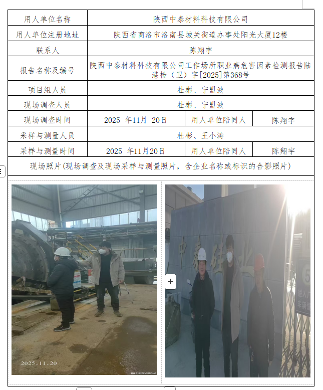 陕西中泰材料科技有限公司工作场所职业危害因素检测报告