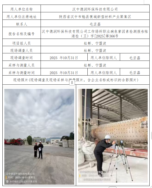 汉中德润环保科技有限公司工作场所职业危害因素检测报告