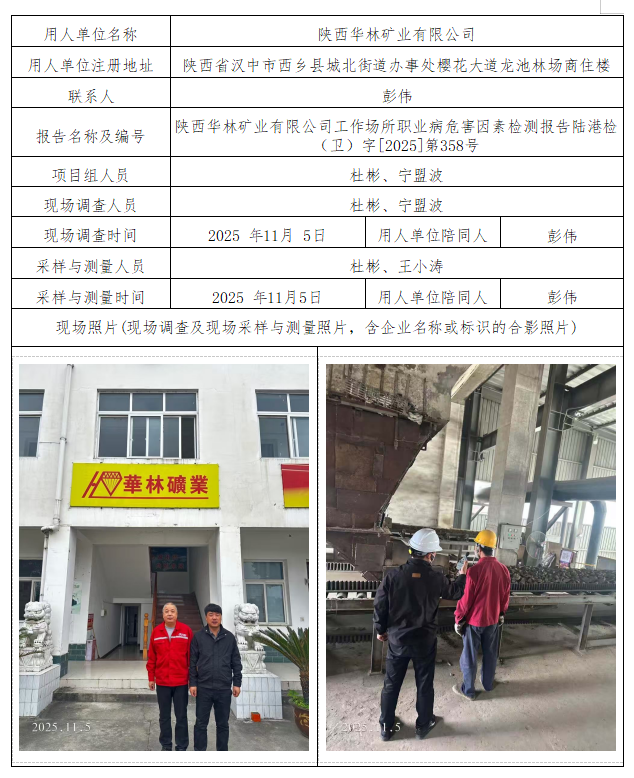 陕西华林矿业有限公司工作场所职业危害因素检测报告