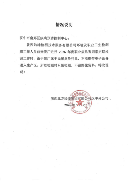陕西北方民爆集团有限公司汉中分公司工作场所职业病危害因素检测